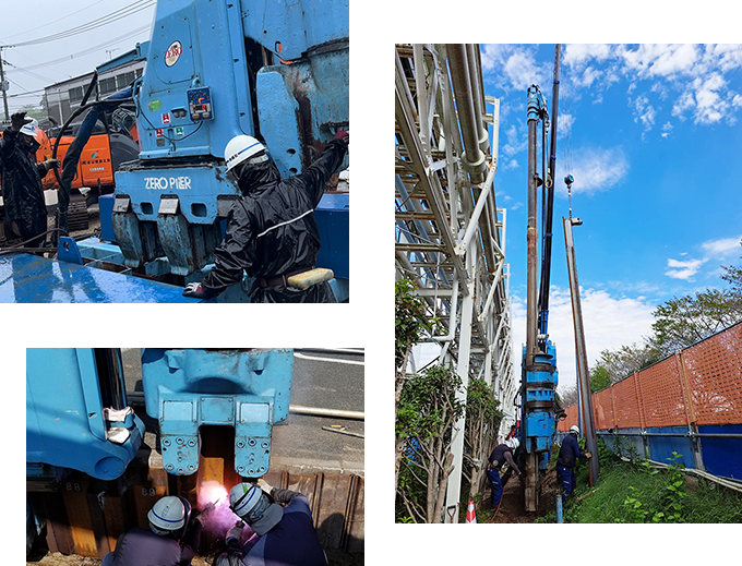 そのなかでも、近接施工を特長とする「ゼロクリアランス工法」は当社の大きな強みであり、全国でも数少ない、専用の施工機械と鋼矢板(ゼロ矢板)を自社で保有している点に加え、さまざまな現場で培ってきたノウハウ・対応力をお客様に評価していただき、多くの施工実績を積み上げております。